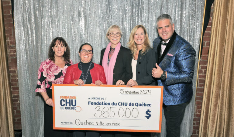 C’est un magnifique mois d’octobre, rempli d’activités et d’initiatives tout en rose, qui se conclut! Le mouvement philanthropique Québec ville en rose, s’ajoutant aux dons amassés tout au long de l’année par la Fondation du CHU de Québec, a permis d’amasser 385 000 $ pour le Centre des maladies du sein du CHU de Québec-Université Laval (CHU).