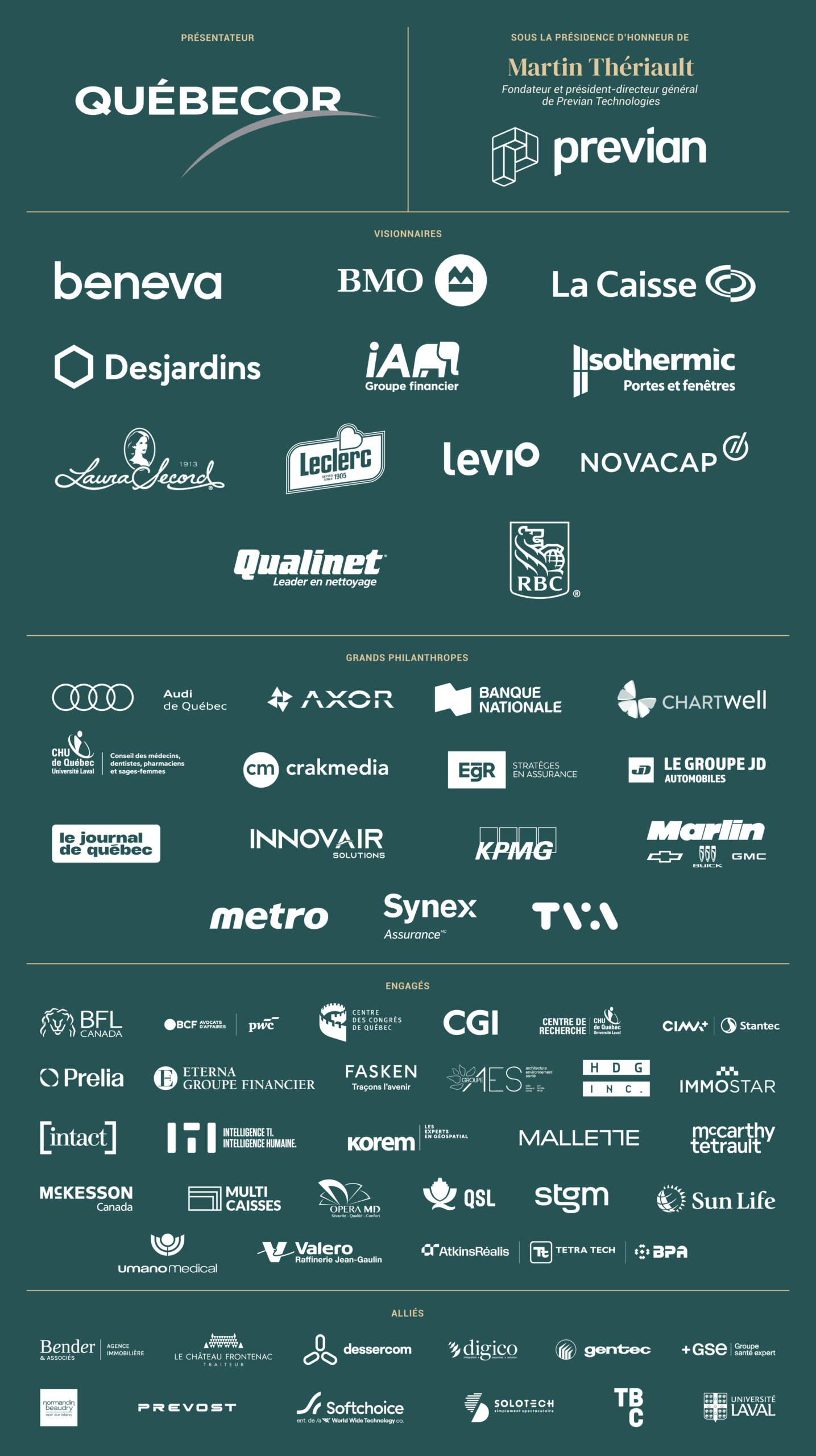 Merci à Beneva, BMO Groupe financier, Desjardins, Fondation Suzanne et Jean-Robert Leclerc, iA Groupe Financier, Isothermic portes et fenêtres, La Caisse, Laura Secord, Levio, Novacap, Qualinet et RBC Banque Royale de leur avoir permis de vivre ce moment magique!
